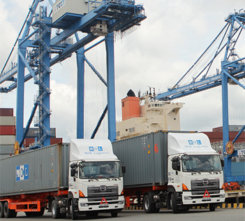 - Dịch vụ vận tải nội địa bằng đội xe của MOL Logistics.
